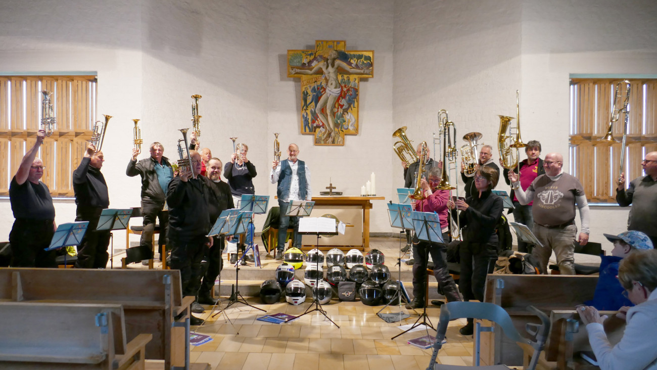 Seit 2003 gibt es in Bayern das Format: „Bike and Brass“ – ins Leben gerufen von Pfarrer Frank Möwes, momentan an der Straubinger Versöhnungskirche. Die Idee war, tagsüber auf dem Motorrad unterwegs sein und abends gemeinsam zu musizieren, alles mit dem Ziel, einen festlichen Abschlussgottesdienst musikalisch vorzubereiten.